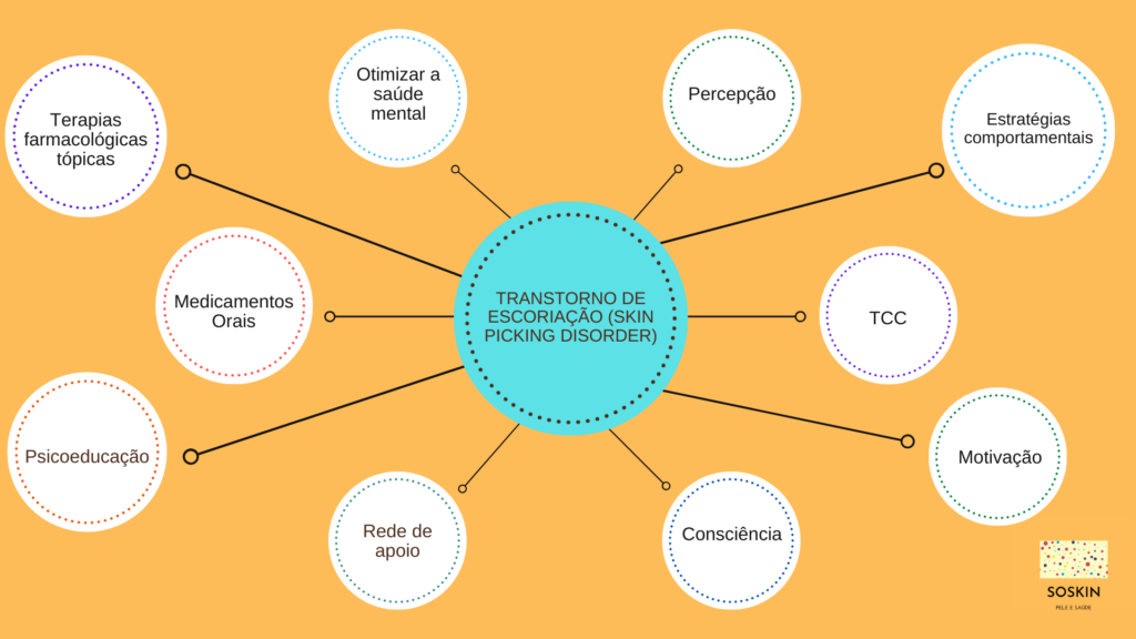 O hábito de mexer na pele costuma ocorrer em situações nas quais o indivíduo sequer se dá conta do que está fazendo, como falar ao telefone, ler, estudar, assistir televisão, deitar na cama, momentos de espera e ao tomar banho. O tratamento desse transtorno geralmente é feito com técnicas de terapia cognitivo-comportamental, embora alguns medicamentos também possam ter algum benefício e ajudar.